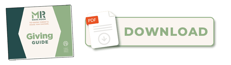 To pursue the vision God has given us, we’re encouraging all the people of God to engage in the work of God. It is our hope that you desire to be a part of advancing this vision, but perhaps you’re wrestling with “how” or “what” this might require. Download our giving guide to find three questions designed to help you make a thoughtful, heart-felt, God-honoring decision related to a four-year faith commitment. This is both a spiritual and a financial exercise that we’d encourage you to undertake as a united household. For parents, this can be a valuable opportunity to help your children grow in their faith as they observe the practical outworking of your faith.